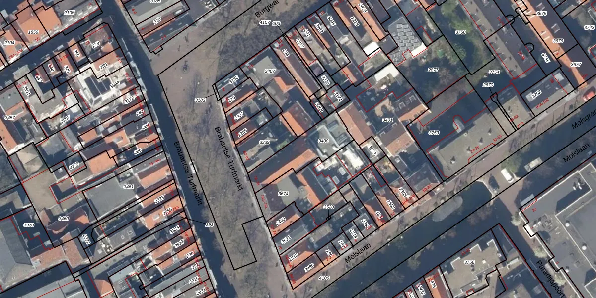 Het perceel waarop Brabantse Turfmarkt 76 staat heeft een oppervlakte van 343 m². Dit is een groot perceel. De perceeloppervlakte wordt geregistreerd door het Kadaster. Gedetailleerde informatie over de maten van dit perceel kunt u vinden in het rapport Kadastrale kaart met maatvoering van Brabantse Turfmarkt 76.