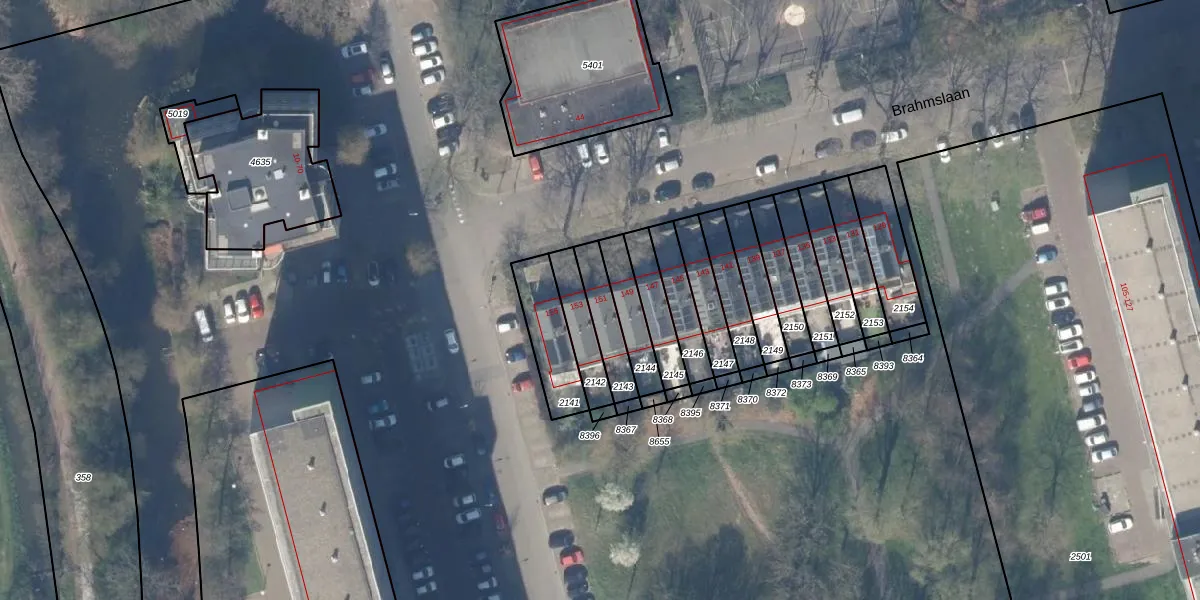 Brahmslaan 151 is gelegen op kadastraal perceel DEL00R2143. Deze kadastrale aanduiding is uniek en wordt gebruikt door het Kadaster om eigendomsrechten en andere zakelijke rechten vast te leggen. Het perceel maakt onderdeel uit van de kadastrale gemeente Delft.
