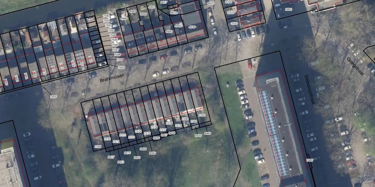 Brahmslaan 27 is gelegen op kadastraal perceel DEL00R2181. Deze kadastrale aanduiding is uniek en wordt gebruikt door het Kadaster om eigendomsrechten en andere zakelijke rechten vast te leggen. Het perceel maakt onderdeel uit van de kadastrale gemeente Delft.