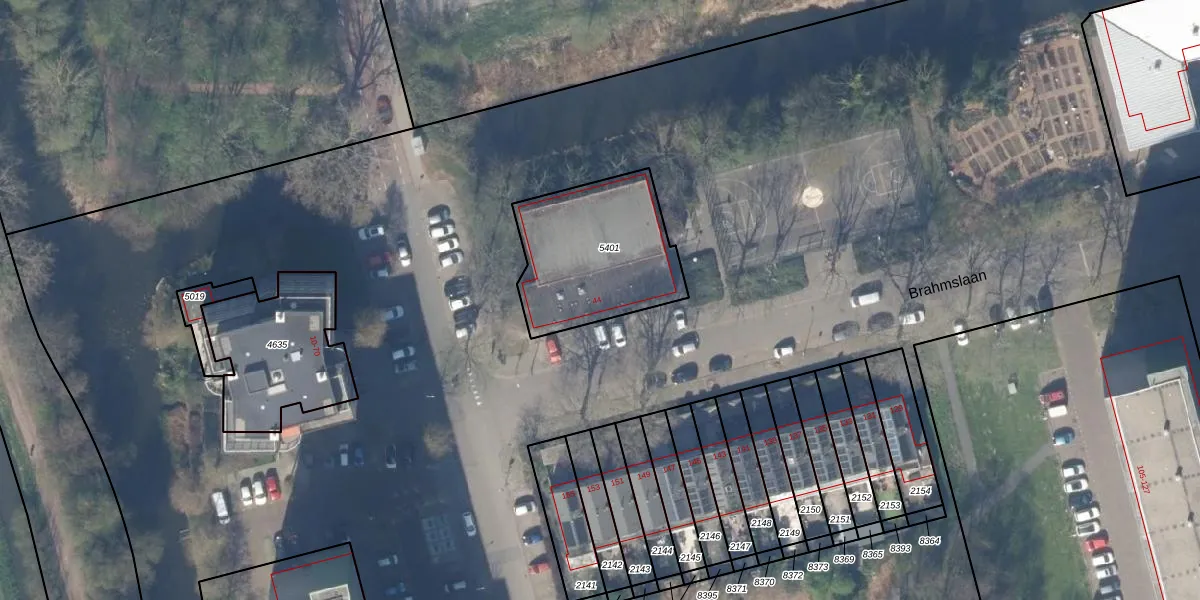 Brahmslaan 44 is gelegen op kadastraal perceel DEL00R5401. Deze kadastrale aanduiding is uniek en wordt gebruikt door het Kadaster om eigendomsrechten en andere zakelijke rechten vast te leggen. Het perceel maakt onderdeel uit van de kadastrale gemeente Delft.