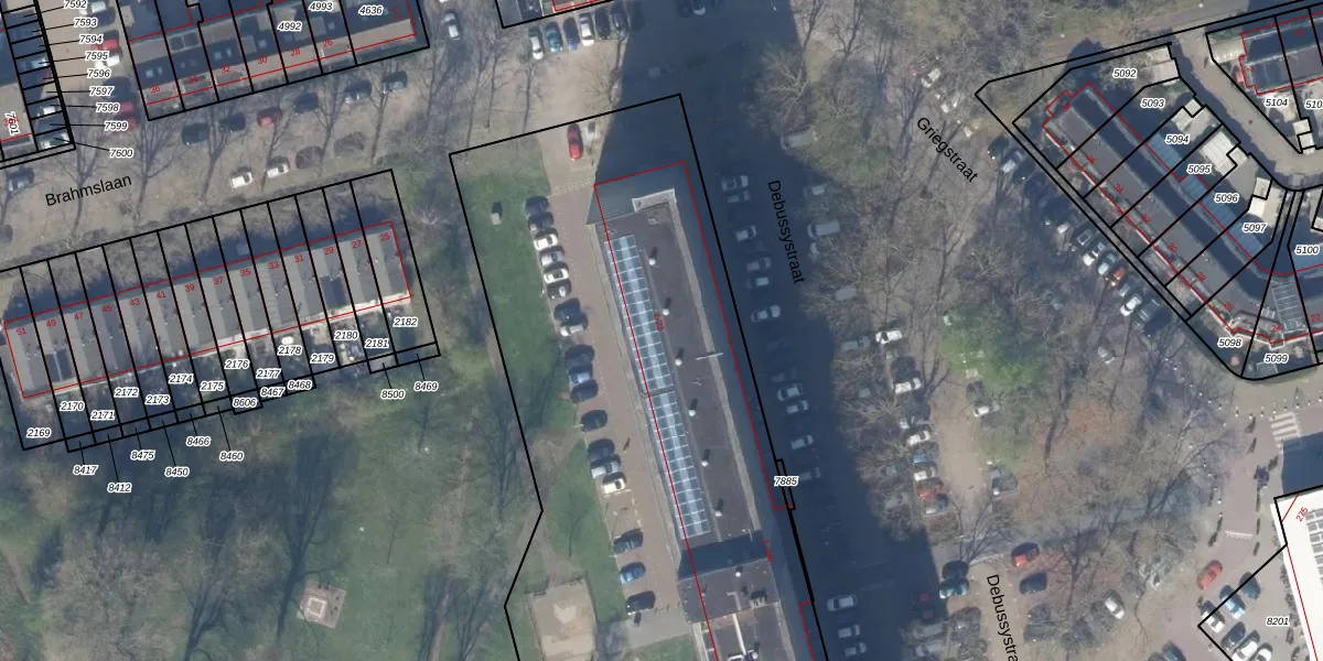 Brahmslaan 5 is gelegen op kadastraal perceel DEL00R2503. Deze kadastrale aanduiding is uniek en wordt gebruikt door het Kadaster om eigendomsrechten en andere zakelijke rechten vast te leggen. Het perceel maakt onderdeel uit van de kadastrale gemeente Delft.