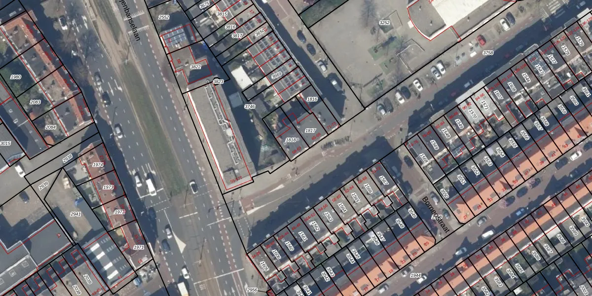 Het perceel waarop het adres ligt is DEL00-N-1818. De afkorting 'DEL00' staat voor kadastrale gemeente Delft. Het perceel is 131 m² groot. Dat is kleiner dan de gemiddelde perceeloppervlakte in Delft, dat op 923,41 m² ligt. Het kleinste perceel in de kadastrale gemeente is 0 m² groot. De grootste perceeloppervlakte is 64,1 ha. Er zijn 3 adressen aanwezig op het perceel. In de Basisregistratie Kadaster (BRK) werden de grenzen van het perceel geregistreerd op 05-01-2004.