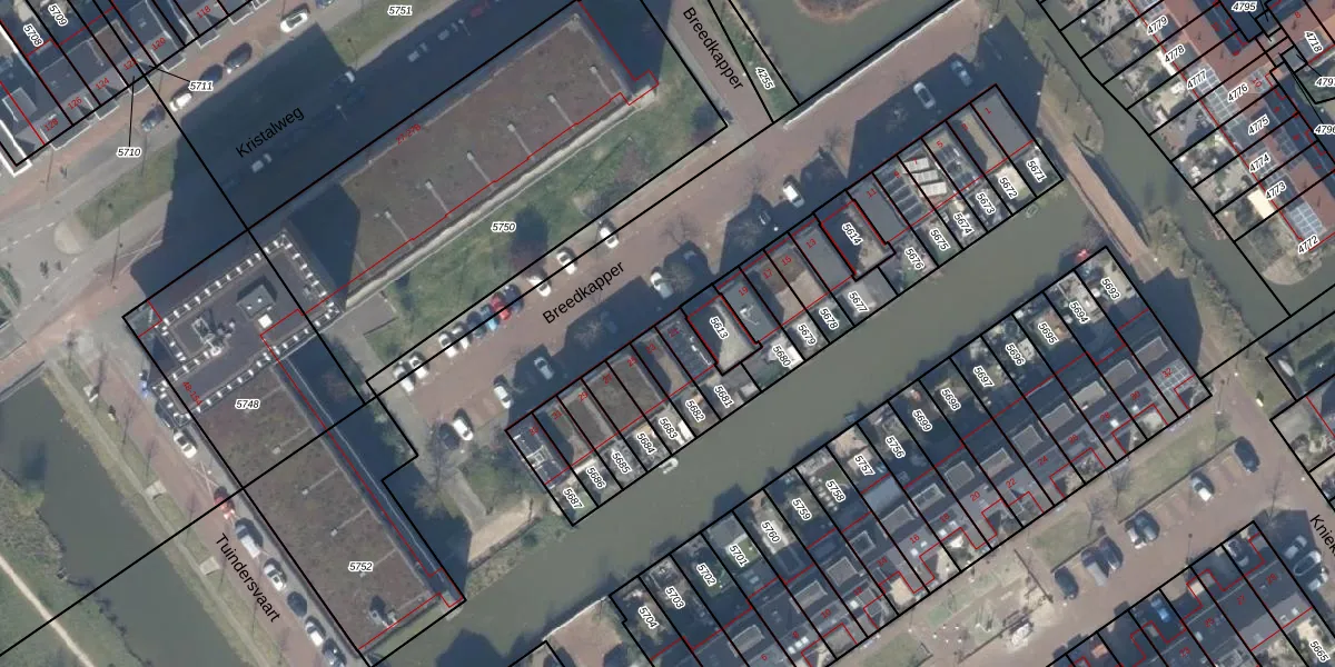 Breedkapper 21 is gelegen op kadastraal perceel DEL00X5681. Deze kadastrale aanduiding is uniek en wordt gebruikt door het Kadaster om eigendomsrechten en andere zakelijke rechten vast te leggen. Het perceel maakt onderdeel uit van de kadastrale gemeente Delft.