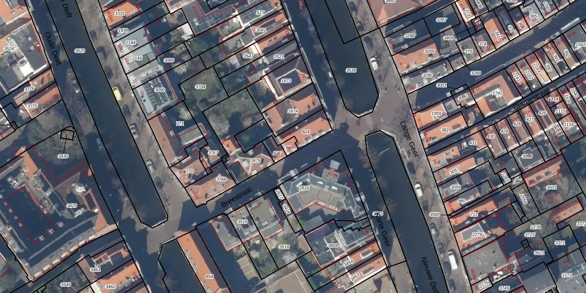 Het perceel waarop Breestraat 2-B staat heeft een oppervlakte van 23 m². Dit is een klein perceel. De perceeloppervlakte wordt geregistreerd door het Kadaster. Gedetailleerde informatie over de maten van dit perceel kunt u vinden in het rapport Kadastrale kaart met maatvoering van Breestraat 2-B.
