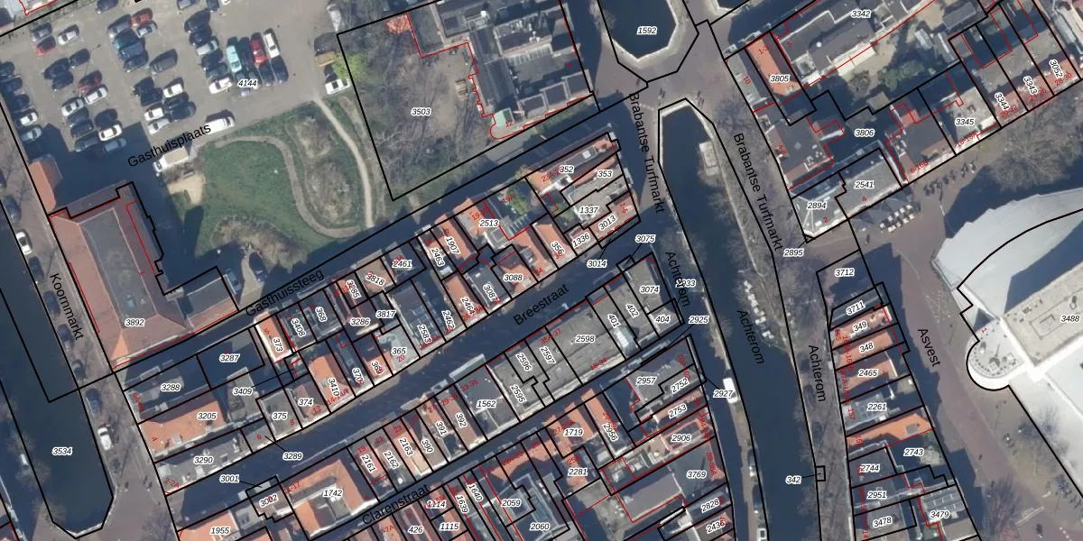Het perceel waarop Breestraat 34 staat heeft een oppervlakte van 167 m². Dit is een middelgroot perceel. De perceeloppervlakte wordt geregistreerd door het Kadaster. Gedetailleerde informatie over de maten van dit perceel kunt u vinden in het rapport Kadastrale kaart met maatvoering van Breestraat 34.
