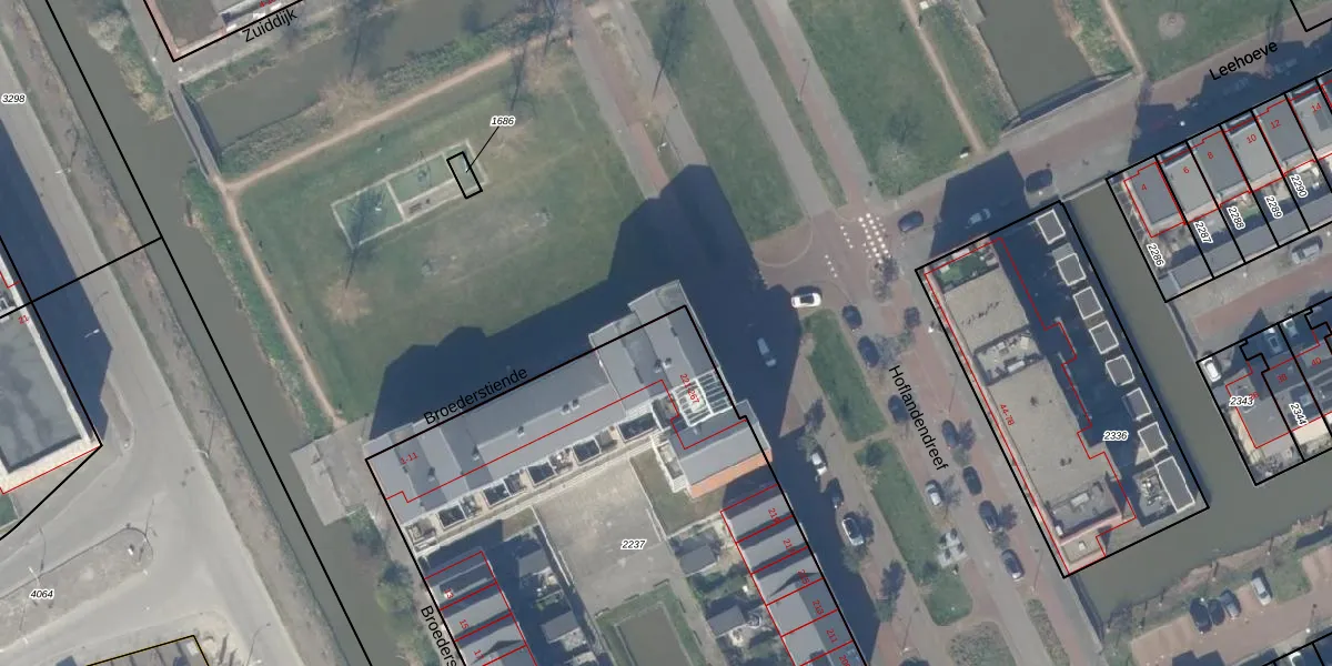 Broederstiende 1 is gelegen op kadastraal perceel DEL00V2237. Deze kadastrale aanduiding is uniek en wordt gebruikt door het Kadaster om eigendomsrechten en andere zakelijke rechten vast te leggen. Het perceel maakt onderdeel uit van de kadastrale gemeente Delft.