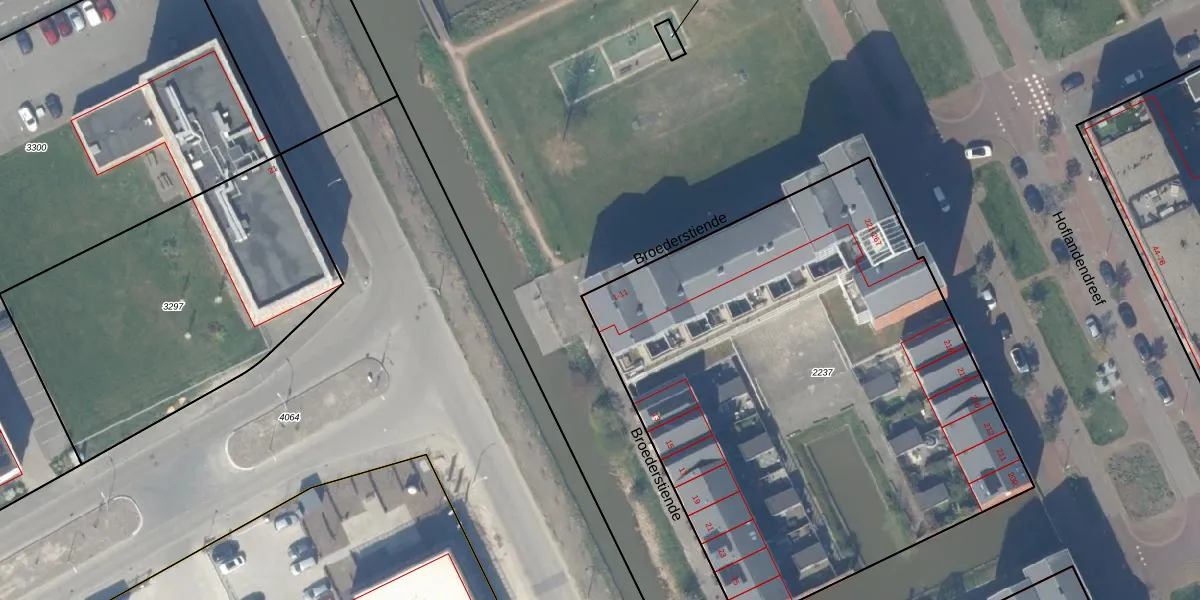 Broederstiende 11 is gelegen op kadastraal perceel DEL00V2237. Deze kadastrale aanduiding is uniek en wordt gebruikt door het Kadaster om eigendomsrechten en andere zakelijke rechten vast te leggen. Het perceel maakt onderdeel uit van de kadastrale gemeente Delft.