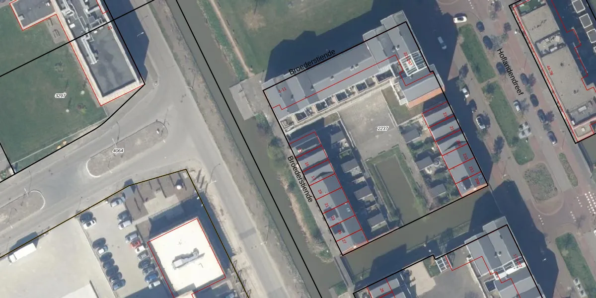 Broederstiende 13 is gelegen op kadastraal perceel DEL00V2237. Deze kadastrale aanduiding is uniek en wordt gebruikt door het Kadaster om eigendomsrechten en andere zakelijke rechten vast te leggen. Het perceel maakt onderdeel uit van de kadastrale gemeente Delft.