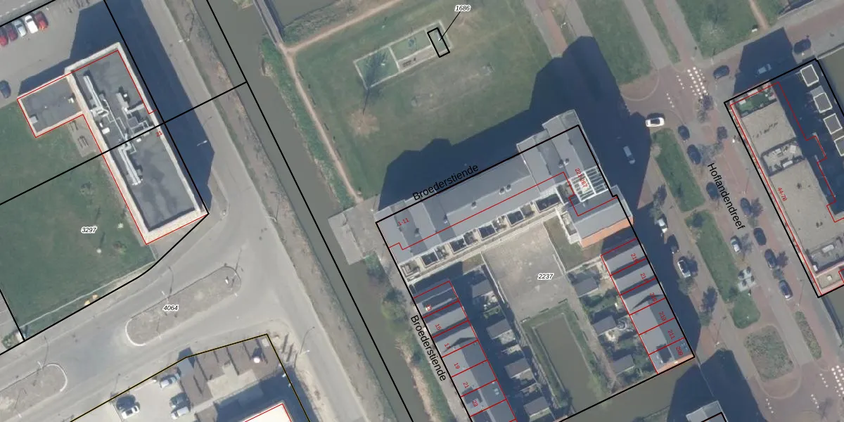 Broederstiende 9 is gelegen op kadastraal perceel DEL00V2237. Deze kadastrale aanduiding is uniek en wordt gebruikt door het Kadaster om eigendomsrechten en andere zakelijke rechten vast te leggen. Het perceel maakt onderdeel uit van de kadastrale gemeente Delft.