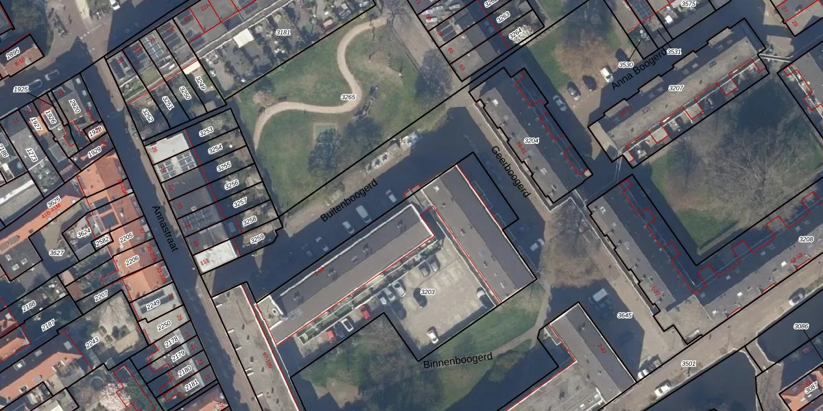 Buitenboogerd 25 is gelegen op kadastraal perceel DEL00B3203. Deze kadastrale aanduiding is uniek en wordt gebruikt door het Kadaster om eigendomsrechten en andere zakelijke rechten vast te leggen. Het perceel maakt onderdeel uit van de kadastrale gemeente Delft.