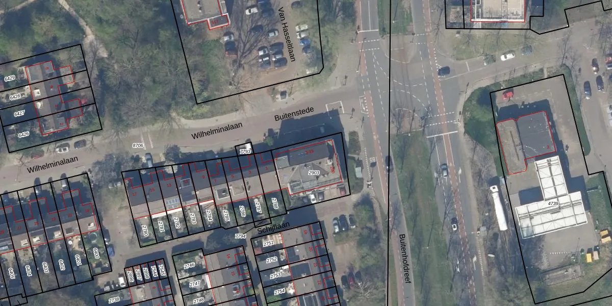 Het perceel waarop Buitenstede 9 staat heeft een oppervlakte van 465 m². Dit is een groot perceel. De perceeloppervlakte wordt geregistreerd door het Kadaster. Gedetailleerde informatie over de maten van dit perceel kunt u vinden in het rapport Kadastrale kaart met maatvoering van Buitenstede 9.