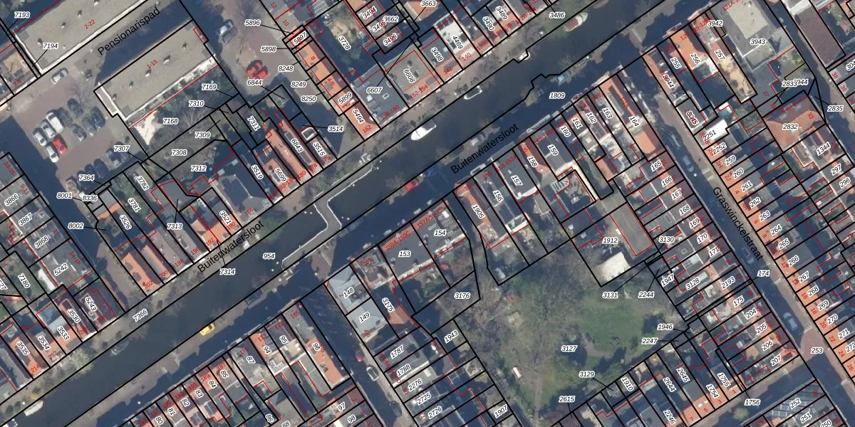 Buitenwatersloot 157-B is gelegen op kadastraal perceel DEL00O154. Deze kadastrale aanduiding is uniek en wordt gebruikt door het Kadaster om eigendomsrechten en andere zakelijke rechten vast te leggen. Het perceel maakt onderdeel uit van de kadastrale gemeente Delft.