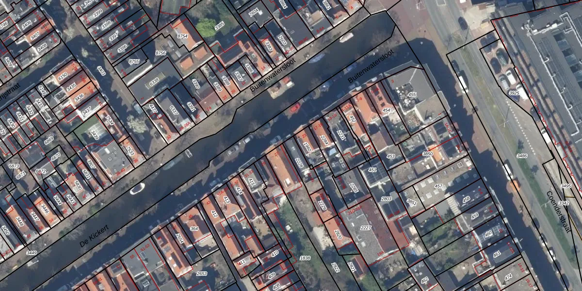 Buitenwatersloot 25 is gelegen op kadastraal perceel DEL00O2228. Deze kadastrale aanduiding is uniek en wordt gebruikt door het Kadaster om eigendomsrechten en andere zakelijke rechten vast te leggen. Het perceel maakt onderdeel uit van de kadastrale gemeente Delft.