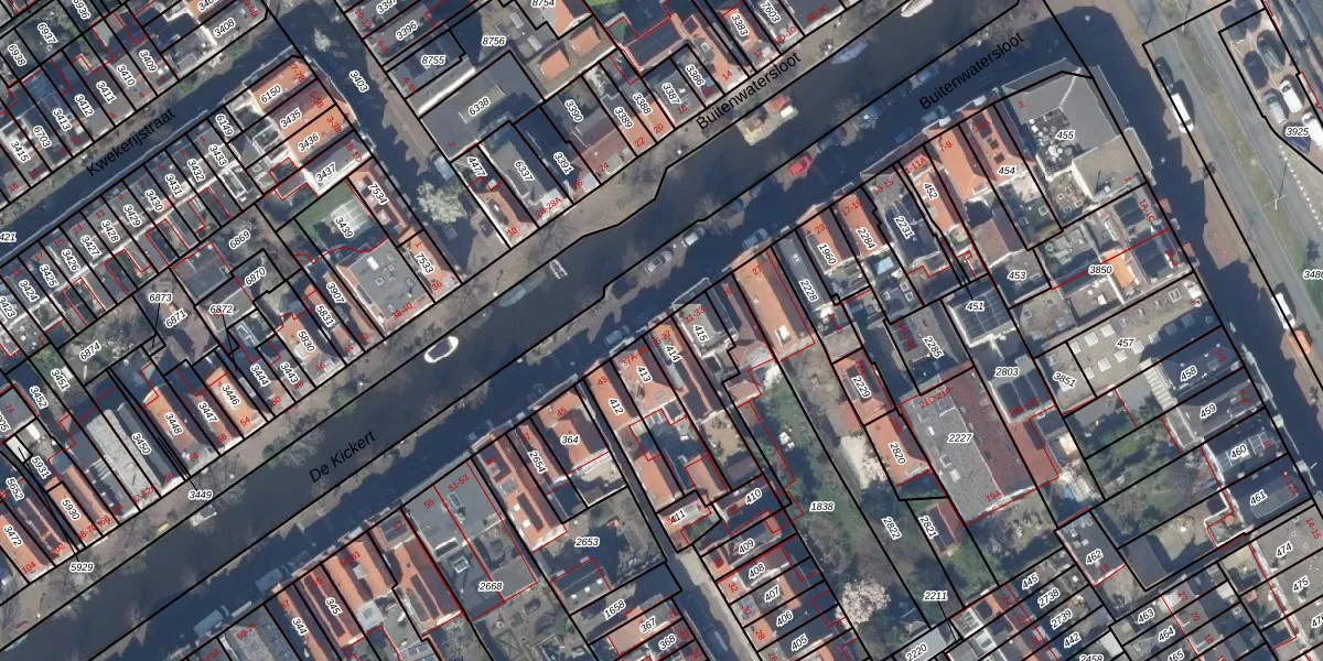 Buitenwatersloot 35 is gelegen op kadastraal perceel DEL00O414. Deze kadastrale aanduiding is uniek en wordt gebruikt door het Kadaster om eigendomsrechten en andere zakelijke rechten vast te leggen. Het perceel maakt onderdeel uit van de kadastrale gemeente Delft.
