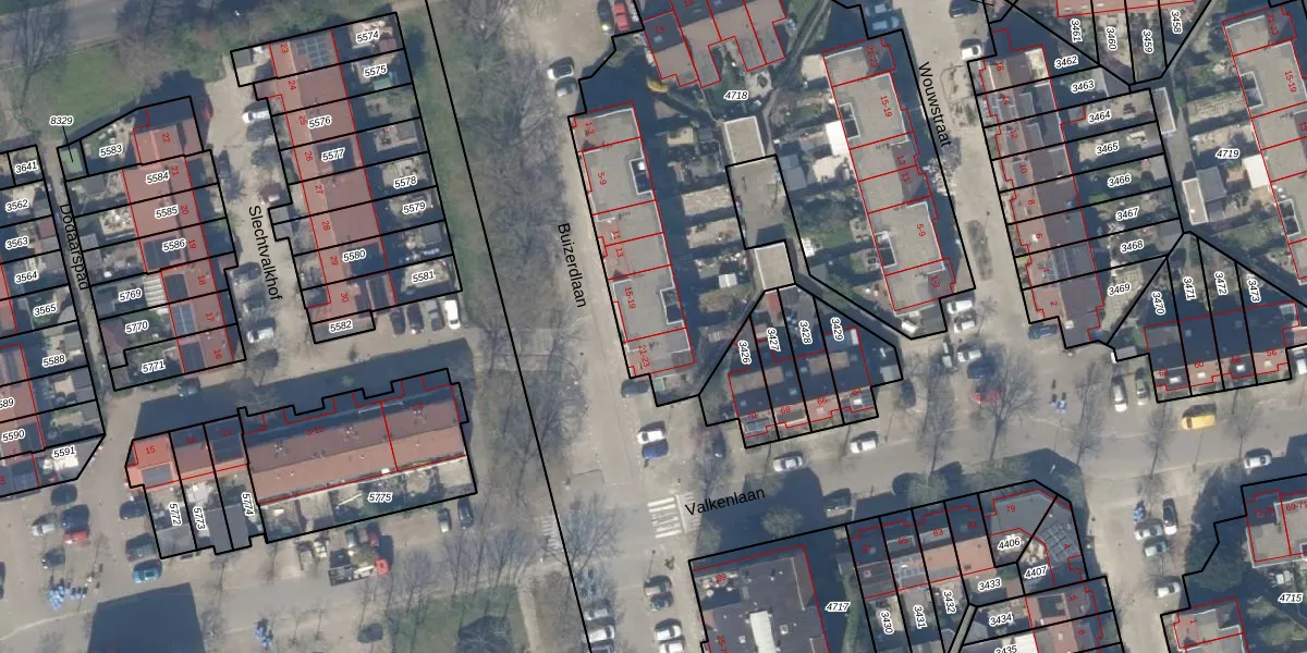 Buizerdlaan 19 is gelegen op kadastraal perceel DEL00R4718. Deze kadastrale aanduiding is uniek en wordt gebruikt door het Kadaster om eigendomsrechten en andere zakelijke rechten vast te leggen. Het perceel maakt onderdeel uit van de kadastrale gemeente Delft.