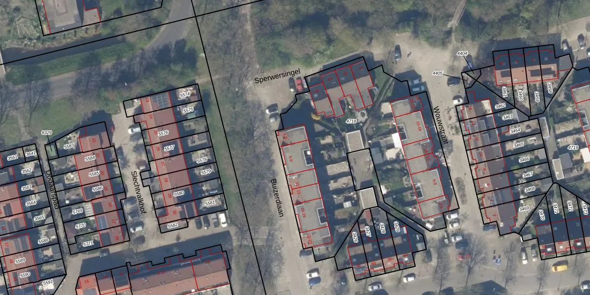 Buizerdlaan 5 is gelegen op kadastraal perceel DEL00R4718. Deze kadastrale aanduiding is uniek en wordt gebruikt door het Kadaster om eigendomsrechten en andere zakelijke rechten vast te leggen. Het perceel maakt onderdeel uit van de kadastrale gemeente Delft.