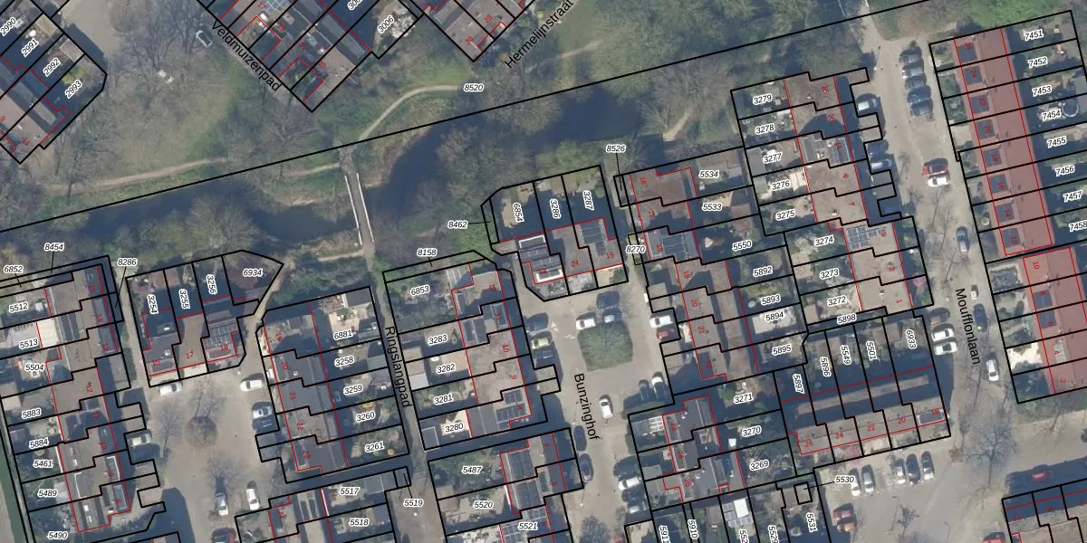 Gebruik de zoekbalk of klik op een perceel voor informatie over de adressen binnen dit perceel.