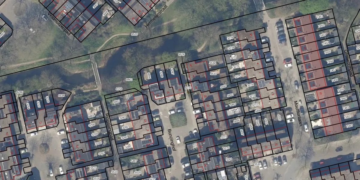 Gebruik de zoekbalk of klik op een perceel voor informatie over de adressen binnen dit perceel.