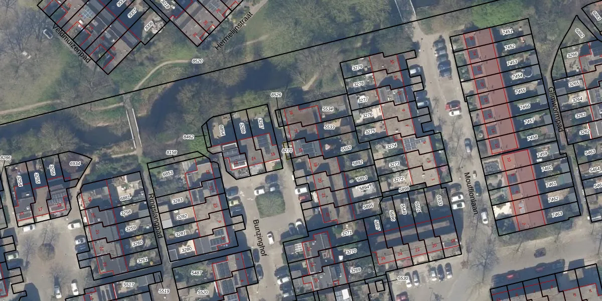 Het perceel waarop Bunzinghof 18 staat heeft een oppervlakte van 152 m². Dit is een middelgroot perceel. De perceeloppervlakte wordt geregistreerd door het Kadaster. Gedetailleerde informatie over de maten van dit perceel kunt u vinden in het rapport Kadastrale kaart met maatvoering van Bunzinghof 18.