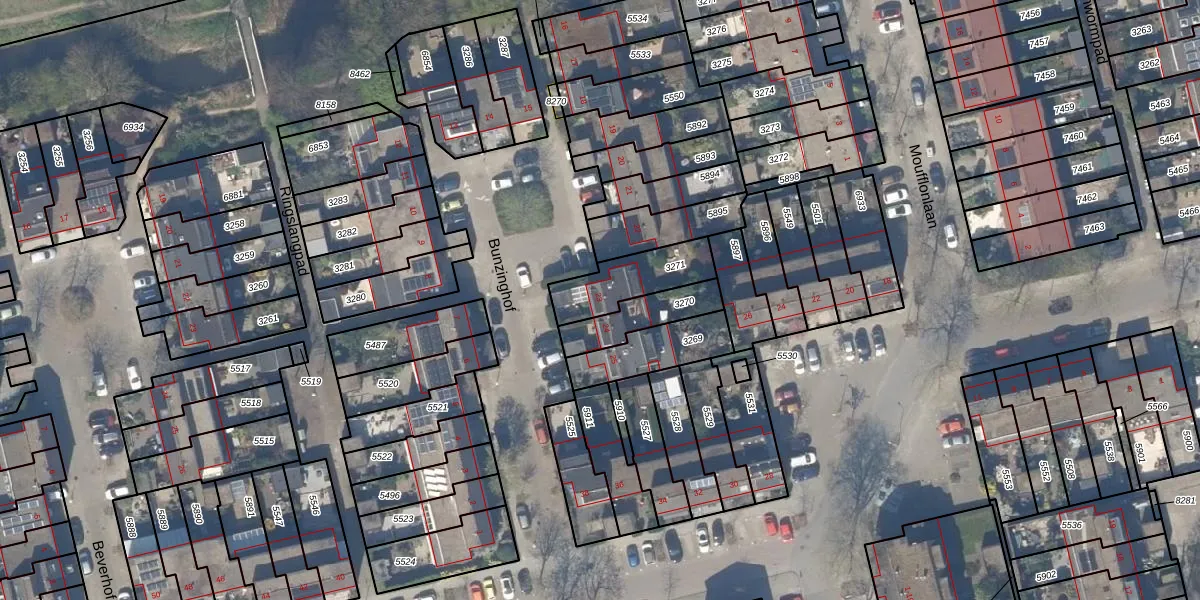 Gebruik de zoekbalk of klik op een perceel voor informatie over de adressen binnen dit perceel.