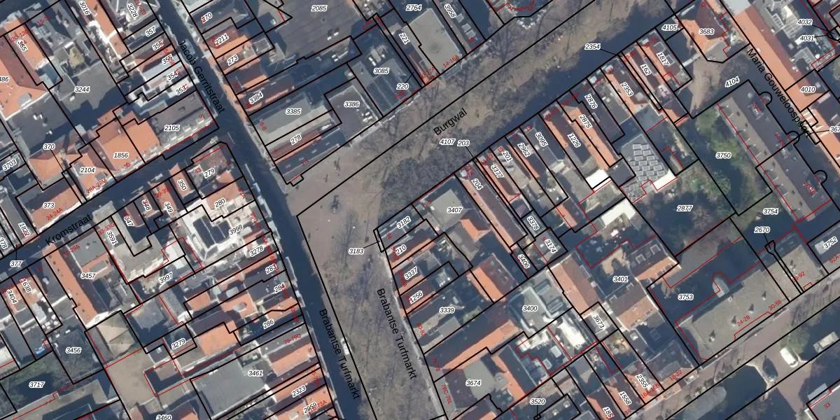 Het perceel waarop Burgwal 1 staat heeft een oppervlakte van 325 m². Dit is een groot perceel. De perceeloppervlakte wordt geregistreerd door het Kadaster. Gedetailleerde informatie over de maten van dit perceel kunt u vinden in het rapport Kadastrale kaart met maatvoering van Burgwal 1.