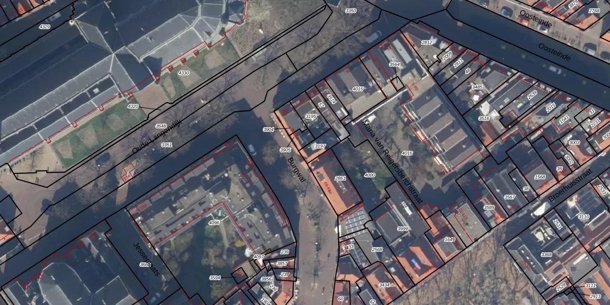 Het perceel waarop Burgwal 97 staat heeft een oppervlakte van 70 m². Dit is een klein perceel. De perceeloppervlakte wordt geregistreerd door het Kadaster. Gedetailleerde informatie over de maten van dit perceel kunt u vinden in het rapport Kadastrale kaart met maatvoering van Burgwal 97.