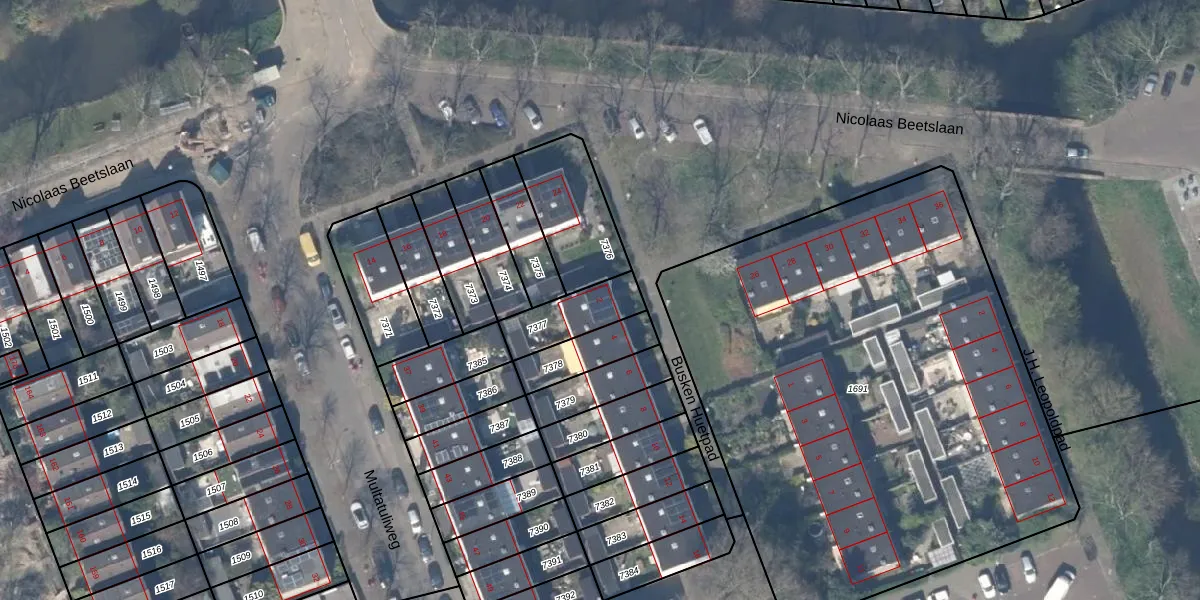 Gebruik de zoekbalk of klik op een perceel voor informatie over de adressen binnen dit perceel.