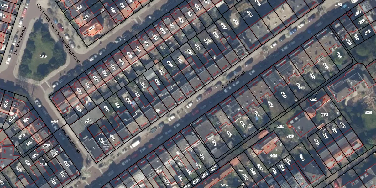 C. Fockstraat 64 is gelegen op kadastraal perceel DEL00F4173. Deze kadastrale aanduiding is uniek en wordt gebruikt door het Kadaster om eigendomsrechten en andere zakelijke rechten vast te leggen. Het perceel maakt onderdeel uit van de kadastrale gemeente Delft.
