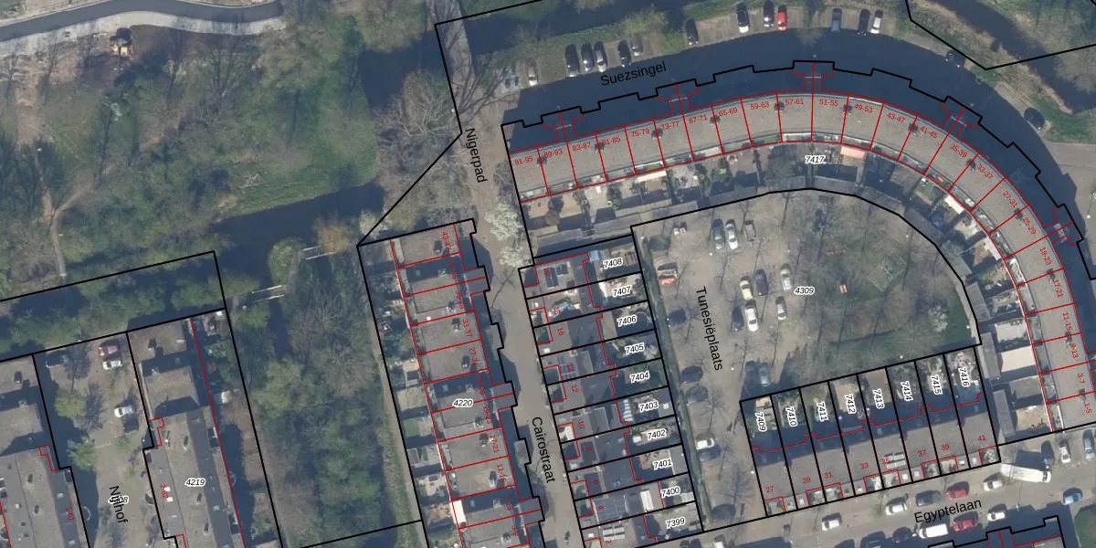 Gebruik de zoekbalk of klik op een perceel voor informatie over de adressen binnen dit perceel.