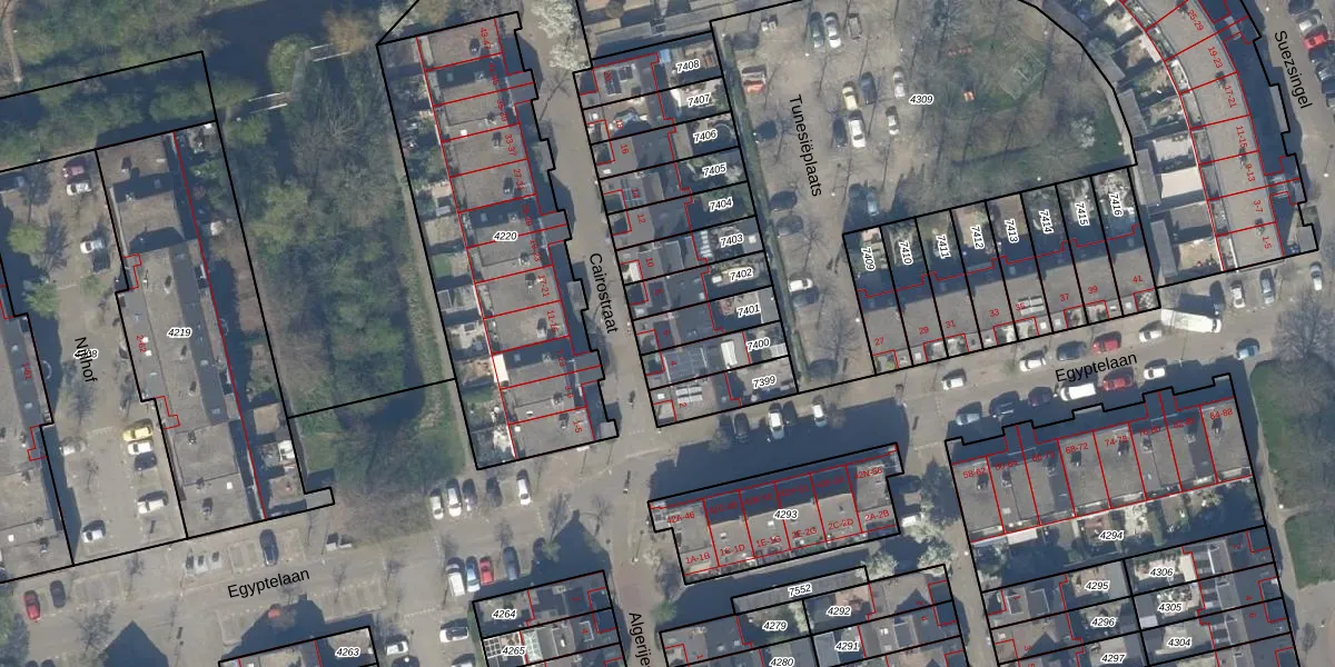 Gebruik de zoekbalk of klik op een perceel voor informatie over de adressen binnen dit perceel.