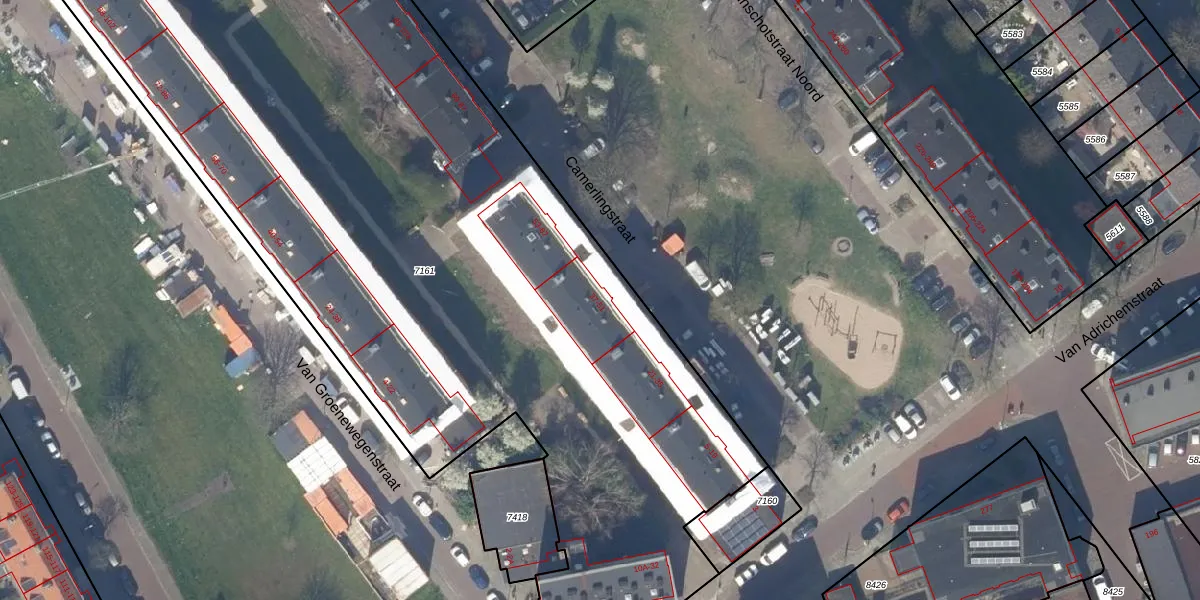 Het perceel waarop Camerlingstraat 37 staat heeft een oppervlakte van 6064 m². Dit is een zeer groot perceel. De perceeloppervlakte wordt geregistreerd door het Kadaster. Gedetailleerde informatie over de maten van dit perceel kunt u vinden in het rapport Kadastrale kaart met maatvoering van Camerlingstraat 37.