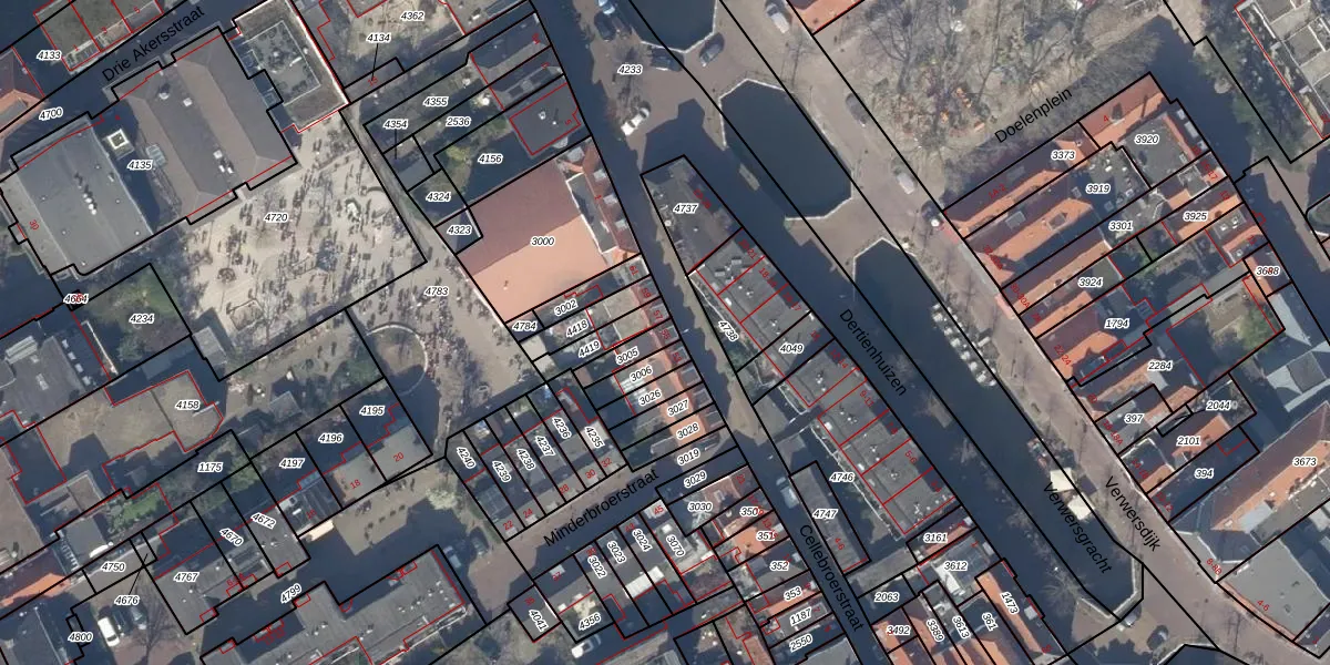 Gebruik de zoekbalk of klik op een perceel voor informatie over de adressen binnen dit perceel.