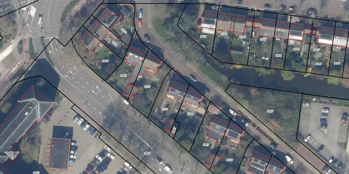 Charlotte de Bourbonstraat 6 is gelegen op kadastraal perceel DEL00A9216. Deze kadastrale aanduiding is uniek en wordt gebruikt door het Kadaster om eigendomsrechten en andere zakelijke rechten vast te leggen. Het perceel maakt onderdeel uit van de kadastrale gemeente Delft.