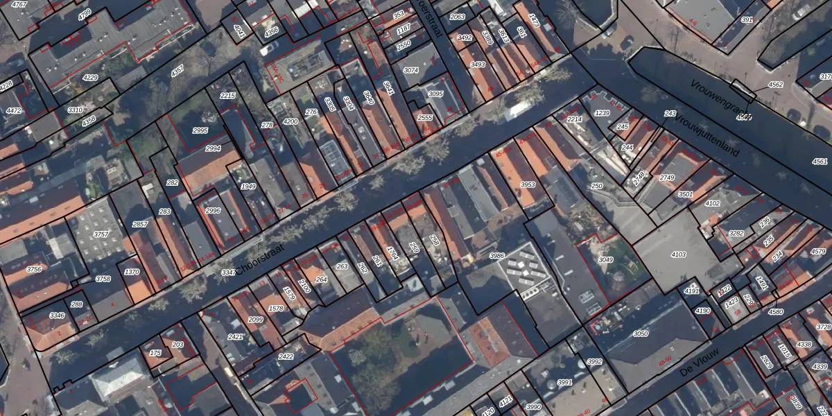 Choorstraat 33-A is gelegen op kadastraal perceel DEL00C258. Deze kadastrale aanduiding is uniek en wordt gebruikt door het Kadaster om eigendomsrechten en andere zakelijke rechten vast te leggen. Het perceel maakt onderdeel uit van de kadastrale gemeente Delft.