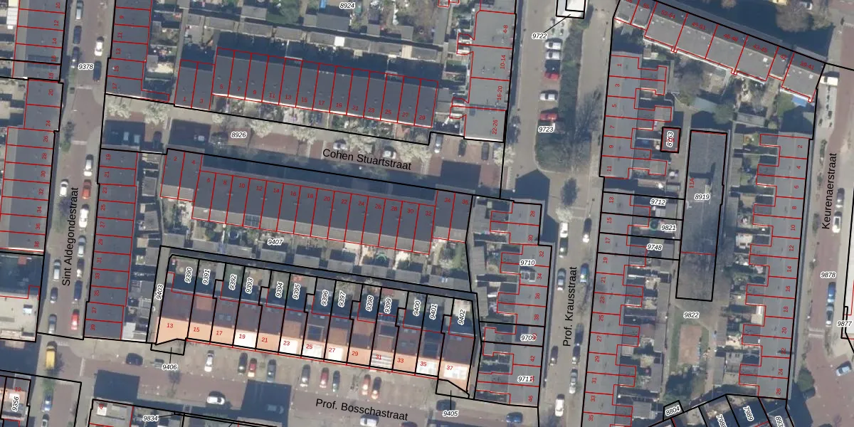 Cohen Stuartstraat 32 is gelegen op kadastraal perceel DEL00A9407. Deze kadastrale aanduiding is uniek en wordt gebruikt door het Kadaster om eigendomsrechten en andere zakelijke rechten vast te leggen. Het perceel maakt onderdeel uit van de kadastrale gemeente Delft.