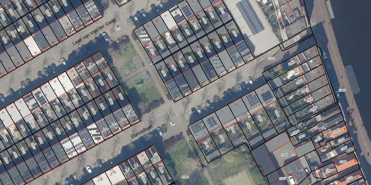 Conradlaan 16 is gelegen op kadastraal perceel DEL00O2363. Deze kadastrale aanduiding is uniek en wordt gebruikt door het Kadaster om eigendomsrechten en andere zakelijke rechten vast te leggen. Het perceel maakt onderdeel uit van de kadastrale gemeente Delft.