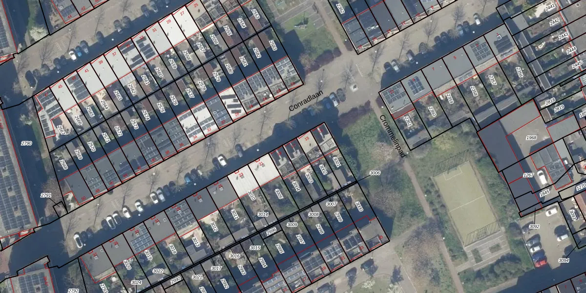Conradlaan 17 is gelegen op kadastraal perceel DEL00O3003. Deze kadastrale aanduiding is uniek en wordt gebruikt door het Kadaster om eigendomsrechten en andere zakelijke rechten vast te leggen. Het perceel maakt onderdeel uit van de kadastrale gemeente Delft.