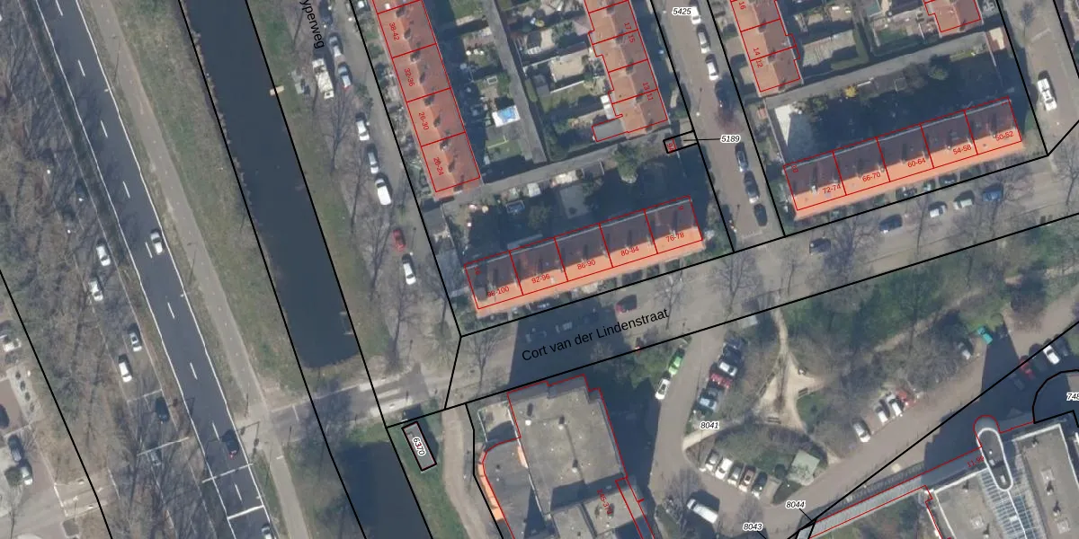 Het perceel waarop Cort van der Lindenstraat 94 staat heeft een oppervlakte van 6563 m². Dit is een zeer groot perceel. De perceeloppervlakte wordt geregistreerd door het Kadaster. Gedetailleerde informatie over de maten van dit perceel kunt u vinden in het rapport Kadastrale kaart met maatvoering van Cort van der Lindenstraat 94.