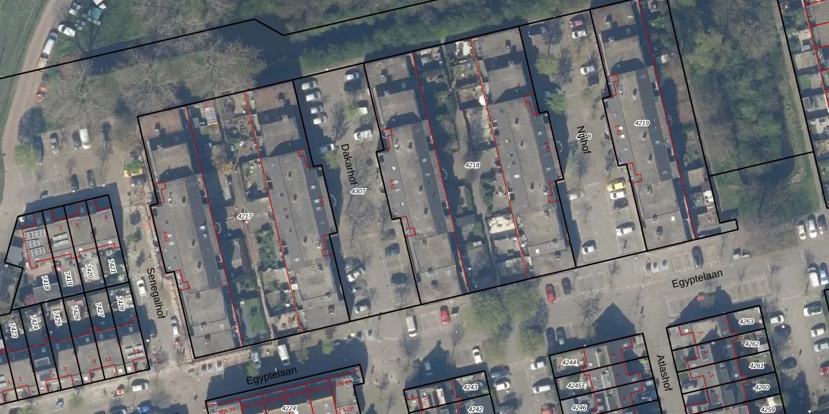 Het perceel waarop Dakarhof 32 staat heeft een oppervlakte van 2378 m². Dit is een zeer groot perceel. De perceeloppervlakte wordt geregistreerd door het Kadaster. Gedetailleerde informatie over de maten van dit perceel kunt u vinden in het rapport Kadastrale kaart met maatvoering van Dakarhof 32.