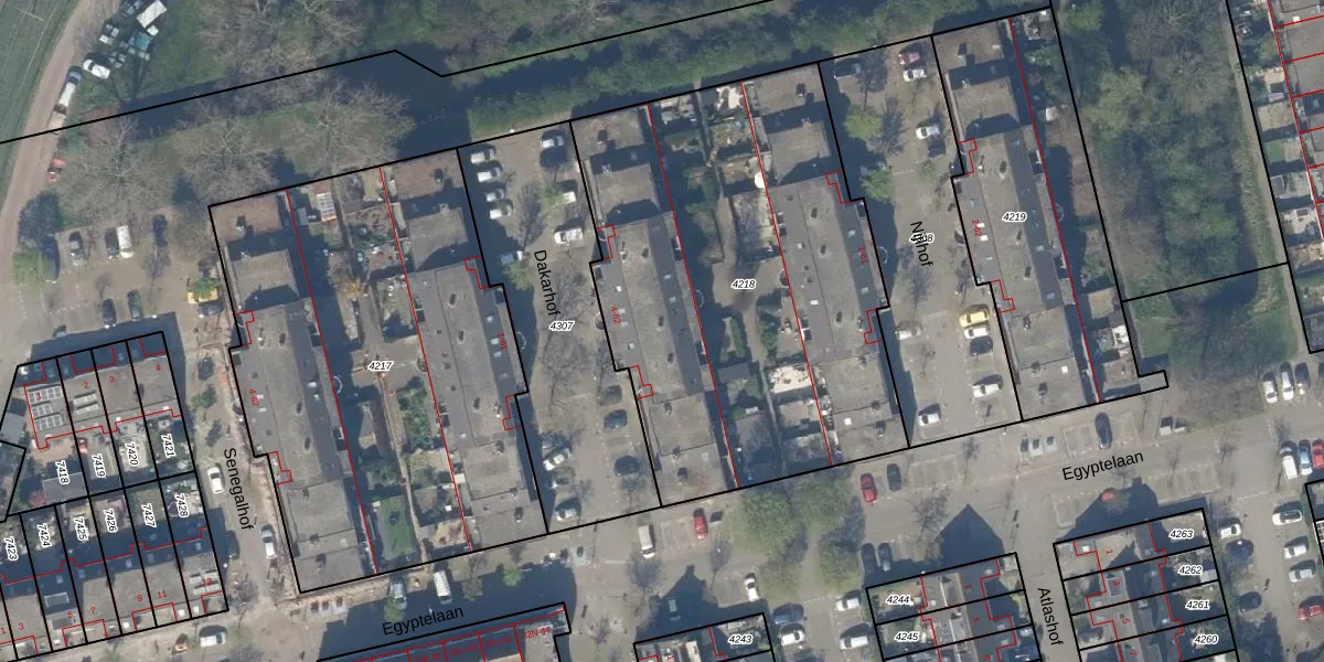 Het perceel waarop Dakarhof 48 staat heeft een oppervlakte van 2378 m². Dit is een zeer groot perceel. De perceeloppervlakte wordt geregistreerd door het Kadaster. Gedetailleerde informatie over de maten van dit perceel kunt u vinden in het rapport Kadastrale kaart met maatvoering van Dakarhof 48.