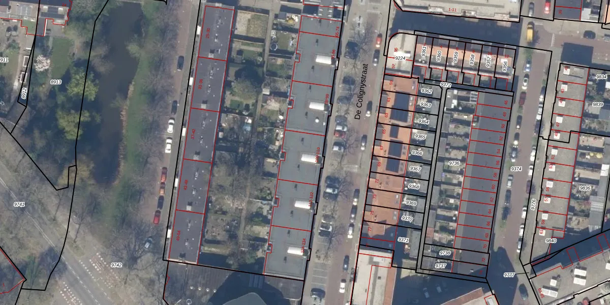 Het perceel waarop De Colignystraat 108 staat heeft een oppervlakte van 8304 m². Dit is een zeer groot perceel. De perceeloppervlakte wordt geregistreerd door het Kadaster. Gedetailleerde informatie over de maten van dit perceel kunt u vinden in het rapport Kadastrale kaart met maatvoering van De Colignystraat 108.