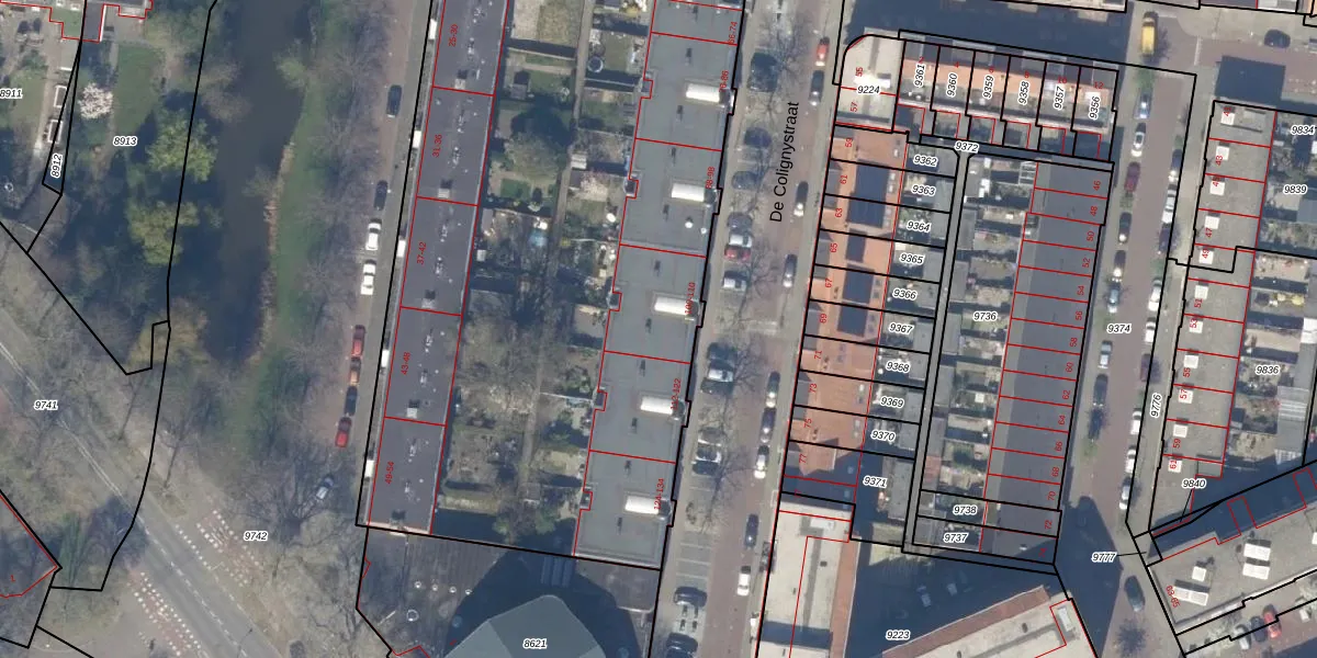 De Colignystraat 110 is gelegen op kadastraal perceel DEL00A9056. Deze kadastrale aanduiding is uniek en wordt gebruikt door het Kadaster om eigendomsrechten en andere zakelijke rechten vast te leggen. Het perceel maakt onderdeel uit van de kadastrale gemeente Delft.