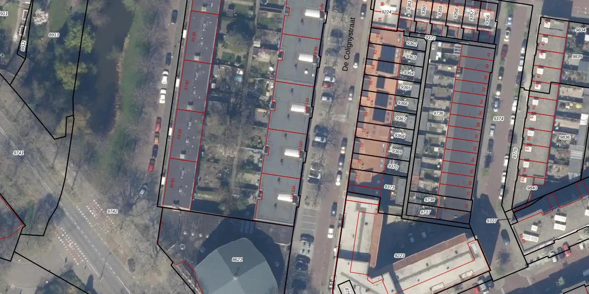 De Colignystraat 116 is gelegen op kadastraal perceel DEL00A9056. Deze kadastrale aanduiding is uniek en wordt gebruikt door het Kadaster om eigendomsrechten en andere zakelijke rechten vast te leggen. Het perceel maakt onderdeel uit van de kadastrale gemeente Delft.