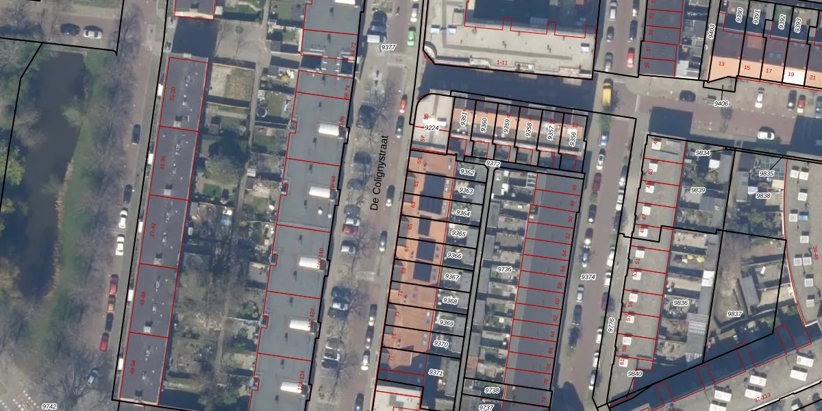 De Colignystraat 63 is gelegen op kadastraal perceel DEL00A9364. Deze kadastrale aanduiding is uniek en wordt gebruikt door het Kadaster om eigendomsrechten en andere zakelijke rechten vast te leggen. Het perceel maakt onderdeel uit van de kadastrale gemeente Delft.