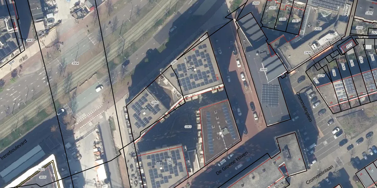 De Groene Haven 96 is gelegen op kadastraal perceel DEL00O3363. Deze kadastrale aanduiding is uniek en wordt gebruikt door het Kadaster om eigendomsrechten en andere zakelijke rechten vast te leggen. Het perceel maakt onderdeel uit van de kadastrale gemeente Delft.