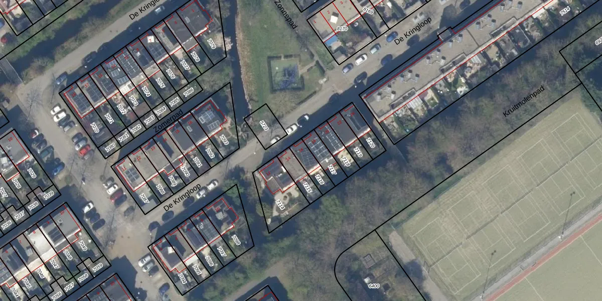 Het perceel waarop De Kringloop 16 staat heeft een oppervlakte van 100 m². Dit is een middelgroot perceel. De perceeloppervlakte wordt geregistreerd door het Kadaster. Gedetailleerde informatie over de maten van dit perceel kunt u vinden in het rapport Kadastrale kaart met maatvoering van De Kringloop 16.
