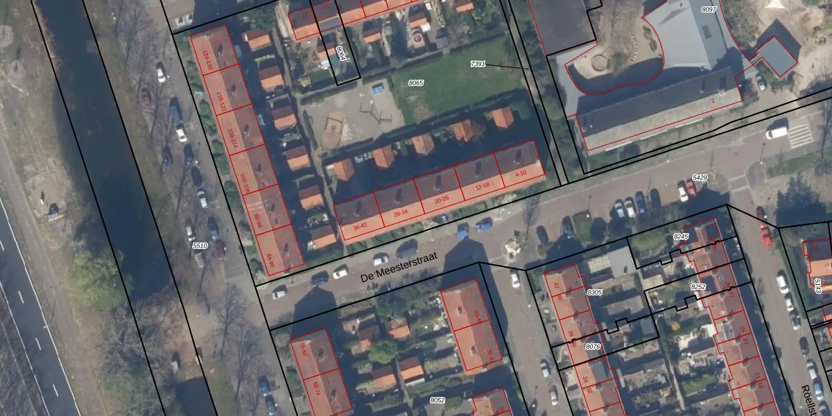 De Meesterstraat 28 is gelegen op kadastraal perceel DEL00F8065. Deze kadastrale aanduiding is uniek en wordt gebruikt door het Kadaster om eigendomsrechten en andere zakelijke rechten vast te leggen. Het perceel maakt onderdeel uit van de kadastrale gemeente Delft.