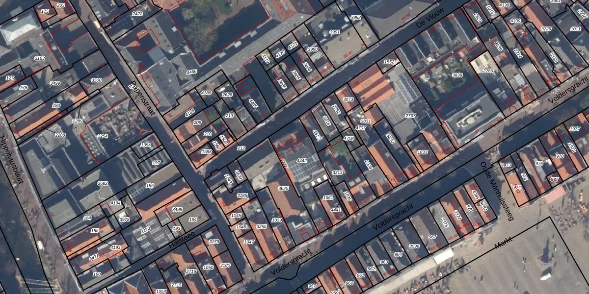 De Vlouw 1-C-2 is gelegen op kadastraal perceel DEL00C4442. Deze kadastrale aanduiding is uniek en wordt gebruikt door het Kadaster om eigendomsrechten en andere zakelijke rechten vast te leggen. Het perceel maakt onderdeel uit van de kadastrale gemeente Delft.