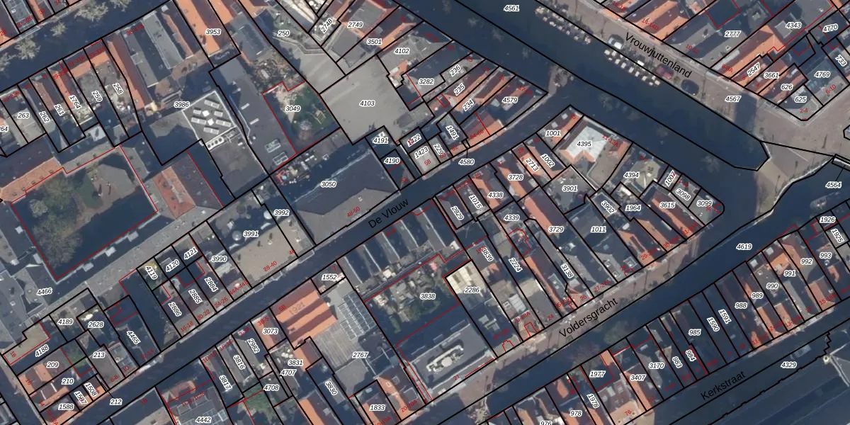 De Vlouw 17 is gelegen op kadastraal perceel DEL00C3838. Deze kadastrale aanduiding is uniek en wordt gebruikt door het Kadaster om eigendomsrechten en andere zakelijke rechten vast te leggen. Het perceel maakt onderdeel uit van de kadastrale gemeente Delft.
