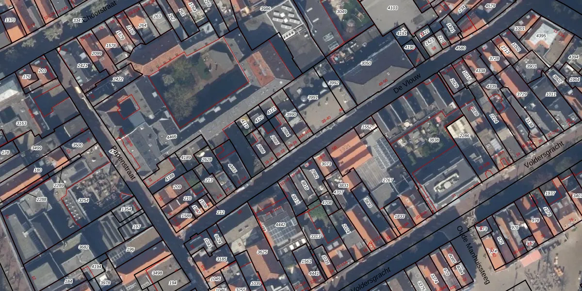 Het perceel waarop De Vlouw 24 staat heeft een oppervlakte van 66 m². Dit is een klein perceel. De perceeloppervlakte wordt geregistreerd door het Kadaster. Gedetailleerde informatie over de maten van dit perceel kunt u vinden in het rapport Kadastrale kaart met maatvoering van De Vlouw 24.